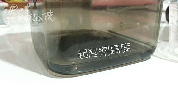 先加入起泡劑大概這樣 但我還來有追加一點因為發現泡泡不夠多