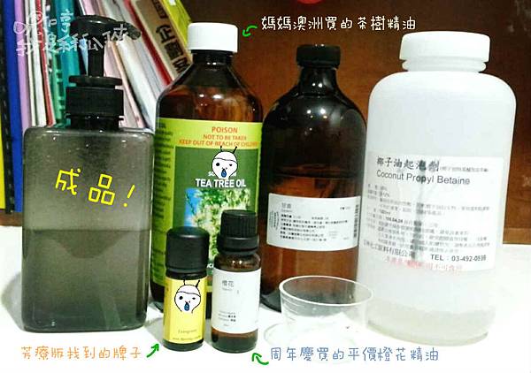 只要有起泡劑當基底再加上精油就是一罐不算天然但起碼添加物少很多的產物